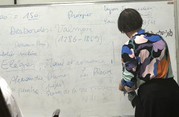 在讲座尾声,Nachtergael教授与学生们共同分析了Desbordes Valmore的诗作《Les roses de Saadi》和《Solitude》,深度感受了那些关于热烈爱情与孤独悲伤的诗篇。这些作品不仅展示了19世纪法国女性诗人的卓越文学才华,更反映了她们在爱情、孤独及记忆主题上的深邃阐释。