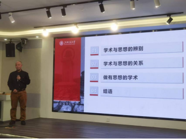 杨枫教授的讲座从“学术与思想的辨别”、“学术与思想的关系”和“做有思想的学术”三个方面展开。杨枫教授认为,学术注重的是关于研究对象的如其所是,即事实性的、经验性的呈现与描述,追求事实的完整性或充分性,是人从事实层面看待世界的方式;而思想则更多地关注理论分析和理论建构,是对事实、事件或活动的解释以及未来发展趋势、规律的规定,体现了人在理论层面和价值意义上对世界的看法。