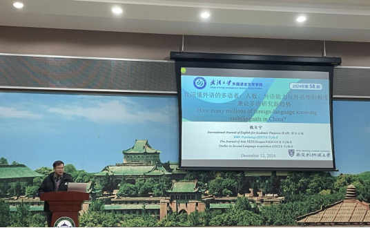 (通讯员 王明月)2024年12月12日下午,国际多语教育协会中国区多语能力与多语教育研究会副秘书长、中国英汉语比较研究会•语言教育与国际传播专业委员会理事、西交利物浦大学应用语言学系副教授魏日宁博士应邀为外语学院大学英语部师生开展了学术讲座,讲座题目为“我国懂外语的多语者:人数、外语能力与外语使用频度——兼论多语研究新趋势”。本次讲座为大学英语部新学期数智素养提升系列讲座,讲座由大学英语部副主任赵玲主持,外语学院副院长程向莉、大学英语部主任文芳出席讲座。
