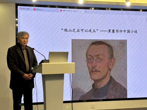 2024年12月26日下午,北京大学外国语学院李昌珂教授应邀为外国语言文学学院师生开展主题为“他山之石可以攻玉——黑塞书评中国小说”的学术讲座。讲座由德文系主任徐琼星主持,德文系包向飞教授、张申威老师以及来自外国语言文学学院的本硕博研究生聆听讲座并参与交流。
