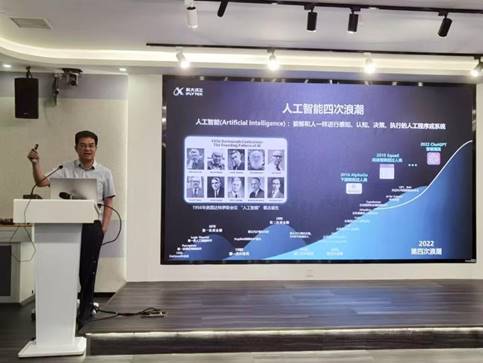 首先,陈红斌在讲座中介绍了人工智能技术的发展历程及其对社会各领域的深远影响。他指出,人工智能已从最初的运算智能发展到如今的认知智能阶段,尤其是在语音识别、图像识别和机器翻译等领域,中国技术已走在全球前列。他以科大讯飞的实践为例,展示了智能语音技术在会议转写、多语种翻译、医疗诊断和教育评估中的广泛应用。