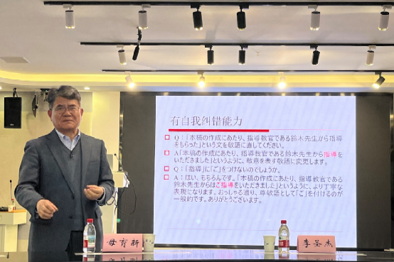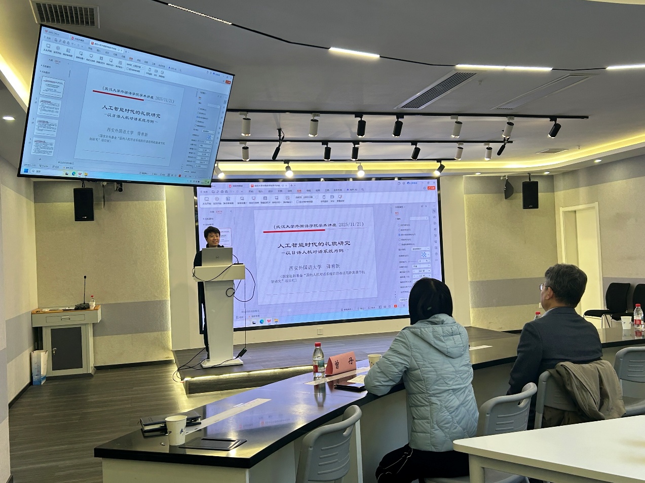 (通讯员:牛万莉)2025年11月21日下午,应外国语言文学学院的邀请,西安外国语大学教授毋育新在外语学院进行了题为“人工智能时代的礼貌研究:以日语人机对话系统为例”的学术讲座。本讲座由外国语言文学学院院长李圣杰主持,日语系主任曾丹、日语系王欣、程莉、宁宇等教师出席,院系本硕博学生参加了讲座。
