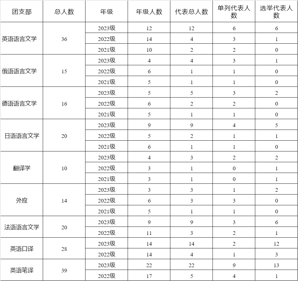 根据《武汉大学外国语言文学学院第二十次研究生代表大会选举办法》的相关要求,经过各团支部民主推荐、投票选举,报武汉大学外国语言文学学院第二十次研究生代表大会资格审查组审查、学院党委批准,拟确定熊志伟等113人为武汉大学外国语言文学学院第二十次研究生代表大会代表,其中:2023级代表81人、2022级代表25人、2021级代表7人。代表覆盖各个专业、年级及主要学生组织。现将本次研代会代表名单公示如下: