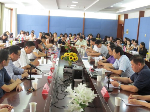 下午,法语系主任吴泓缈教授从管理模式,中西文化差异,教师待遇以及师生关系等方面对巴黎七大的孔院建设概况进行了阐述。德语系代表包向飞主任讨论了重塑孔子形象,倡导守护儒家文化,守护传统,保持世界文化的多样性的必要性。英文系主任朱宾忠教授对孔院现行运作模式下的可持续发展问题提出了自己的看法,并对孔院文化传播的定位进行了思考。他从孔院民俗文化传播现状出发,倡导将精英文化融入孔院语言教学之中。英文系代表鄢畅老师讲述了孔院教师接受培训的情况。在回答提问的过程中,吴泓缈教授、郭婷婷教授、朱宾忠教授已及包向飞主任的分别对话与各自的回应中,碰撞出阵阵思想火花。