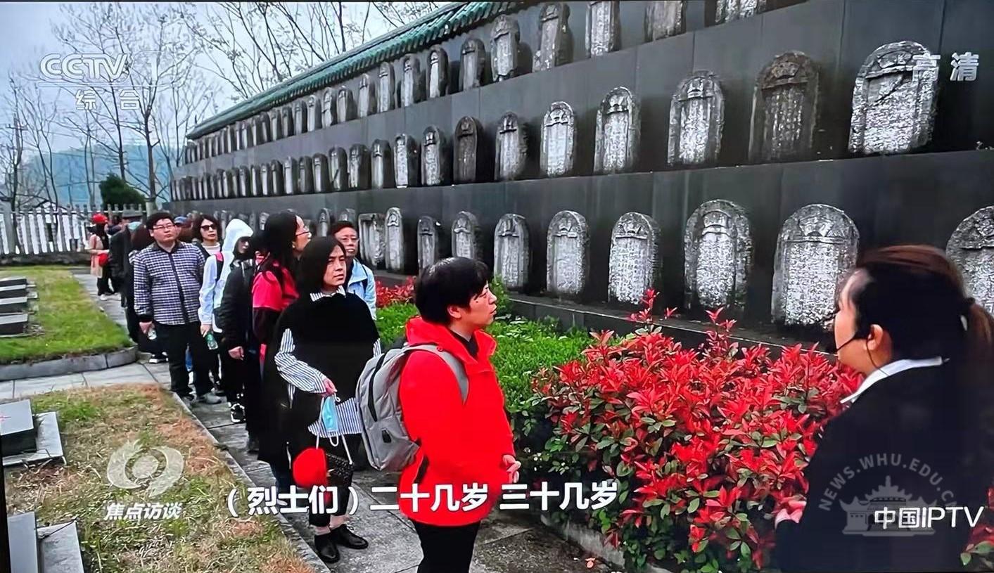 参观烈士陵园时,央视焦点访谈节目组对联合支部进行了跟拍。胡谷明、鄢畅、张东燕老师接受了记者采访。三位老师都表示,学习了烈士事迹,非常感动,深受教育,希望这样的红色教育活动能经常举办,切身感受我们党的革命历史和建立巩固社会主义政权历程中的艰辛与辉煌,把红色基因代代相传。