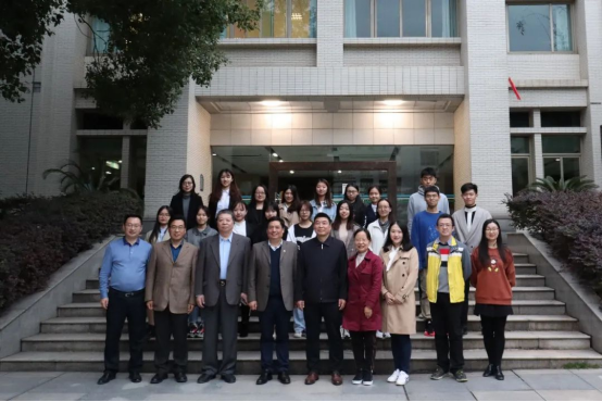 揭牌仪式结束后,领导、老师及口译队队员在外院大楼前合影留念。