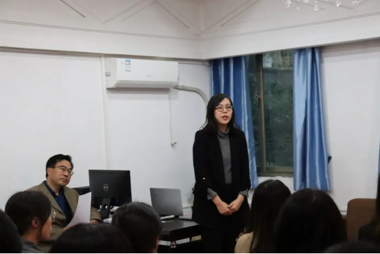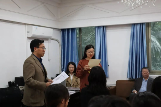 首先,刘迪老师宣读关于同意成立武汉大学外国语言文学学院口译队的批复。根据《武汉大学学生社团管理条约》的相关规定和要求,外国语言文学学院团委对拟成立的武汉大学外国语言文学学院口译队(简称口译队)进行了资格审查和综合评价,经学院公示后无异议,同意成立武汉大学外国语言文学学院口译队。